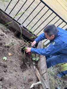 先日、粕屋工場にある小さな畑「CS粕屋ファーム」にて、社員による芋ほりを行いました。今年も無事に育った紅はるかを収穫する季節がやってきました。