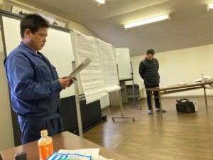 今期の姿勢と目標は、製造、配送、業務、営業と4部門の作成・発表となりました。